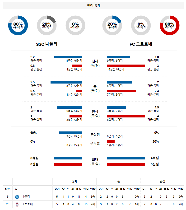 1. 최근 6경기 맞대결 : 6전 5승 1패 13득점 4실점 (나폴리 우세)
