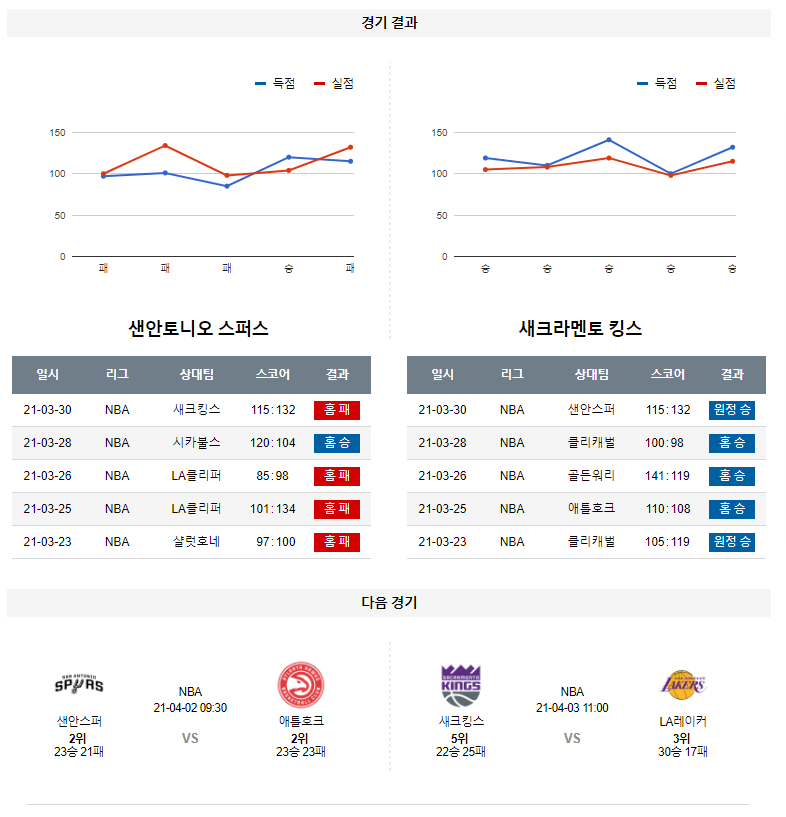 4월 1일 샌안토니오 새크라멘토 분석 NBA 농구