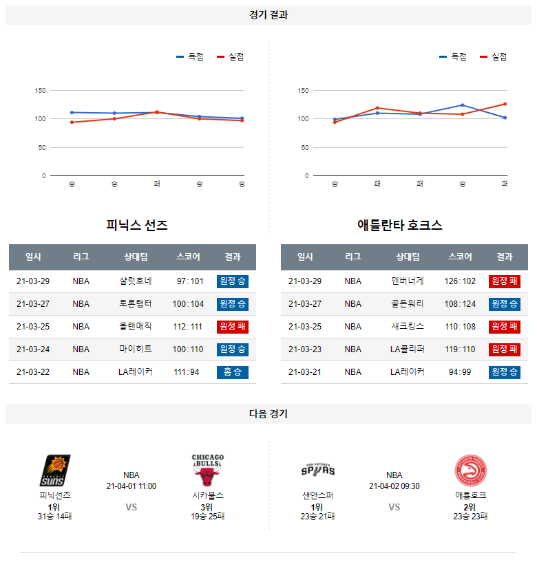 3월 31일 피닉스 애틀랜타 분석 NBA 농구