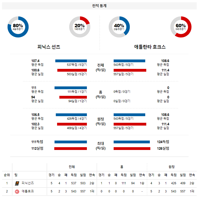 피닉스 선수들이 직전 경기에서 엄청난 야투 난조에 시달렸지만 이 부진을 길게 가져갈 선수들은 아니다. 반면 애틀랜타는 영과 카펠라로 구성된 조합이 막혔을 때 완전히 무너지는 모습을 보이고 있다. 피닉스가 승리할 전망이다.