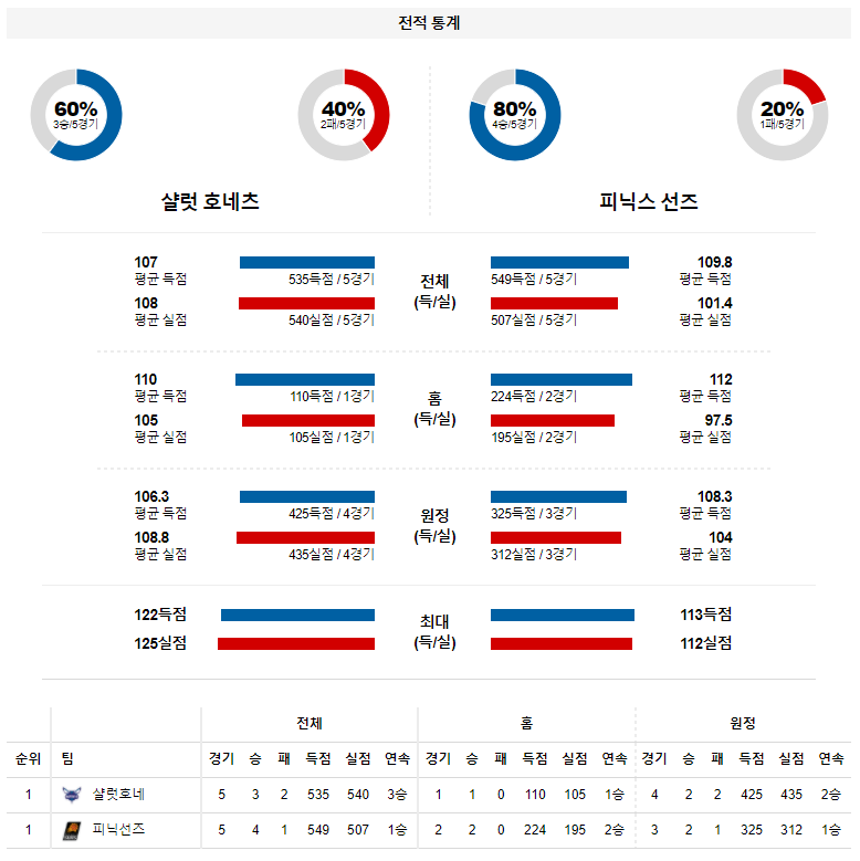 샬럿이 최근 수준급의 공격력을 선보이고 있는 것은 분명하지만 피닉스 급의 팀을 상대로 우위를 점할 수 있는 수준은 아니다. 피닉스는 빈틈없는 전력을 구축하며 매 경기 우위를 점하고 있고, 이번 경기에서도 승리를 따낼 전망이다.