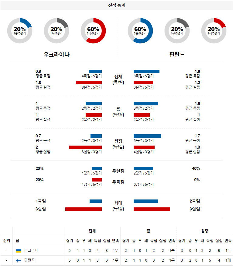 1. 최근 2경기 맞대결 : 2전 2승 3득점 1실점 (우크라이나 우세)