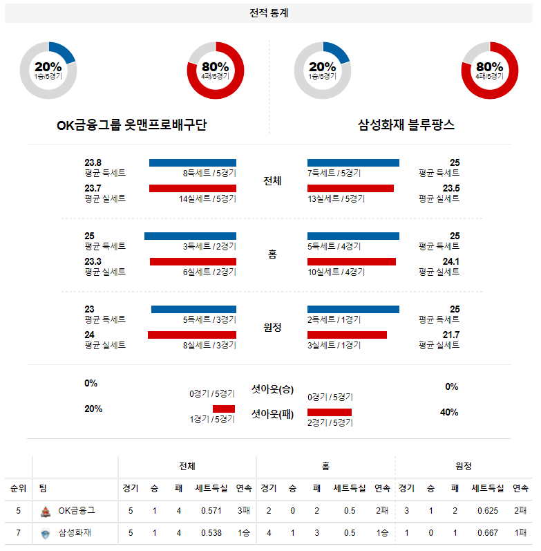 삼성화재 승리를 예상한다. 두 팀 모두 최근 일정 성과가 만족스럽지 않다. 다만 상대적으로 경기력 개선이 빠른 삼성화재가 반등에 성공한다. 외국인 자원의 안정적 활약과 국내 자원들의 고른 득점 지원이 승리를 견인한다. 다만 높이 열세로 상대 공격의 완벽한 대응은 어렵다.