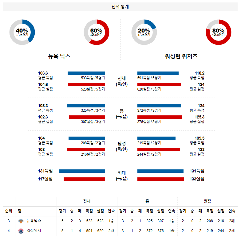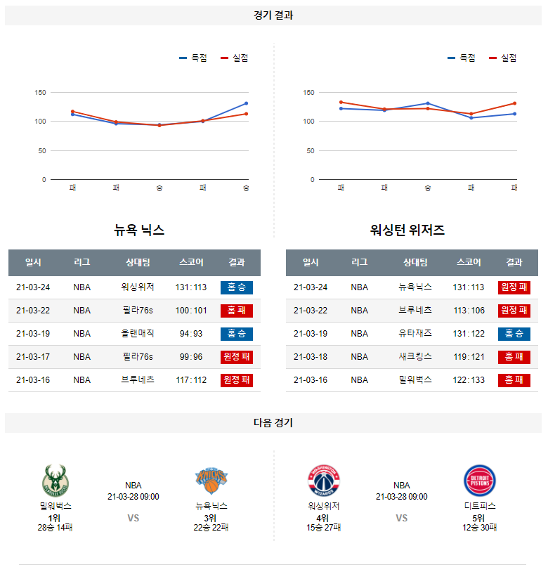 3월 26일 뉴욕닉스 워싱턴 분석 NBA 농구