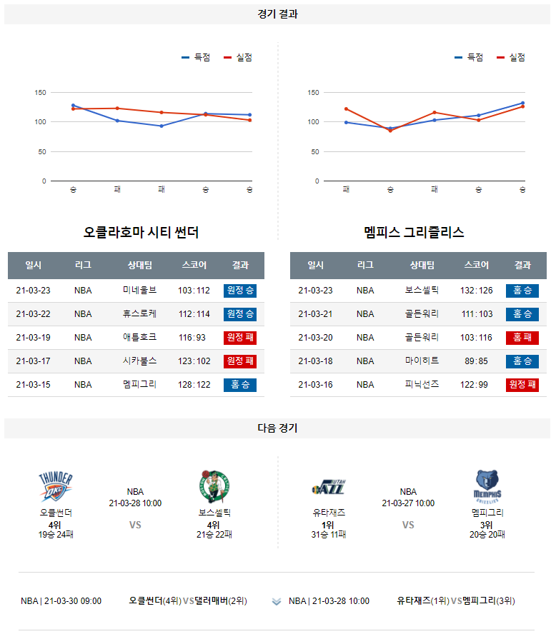 3월 25일 오클라호마시티 멤피스 분석 NBA 농구