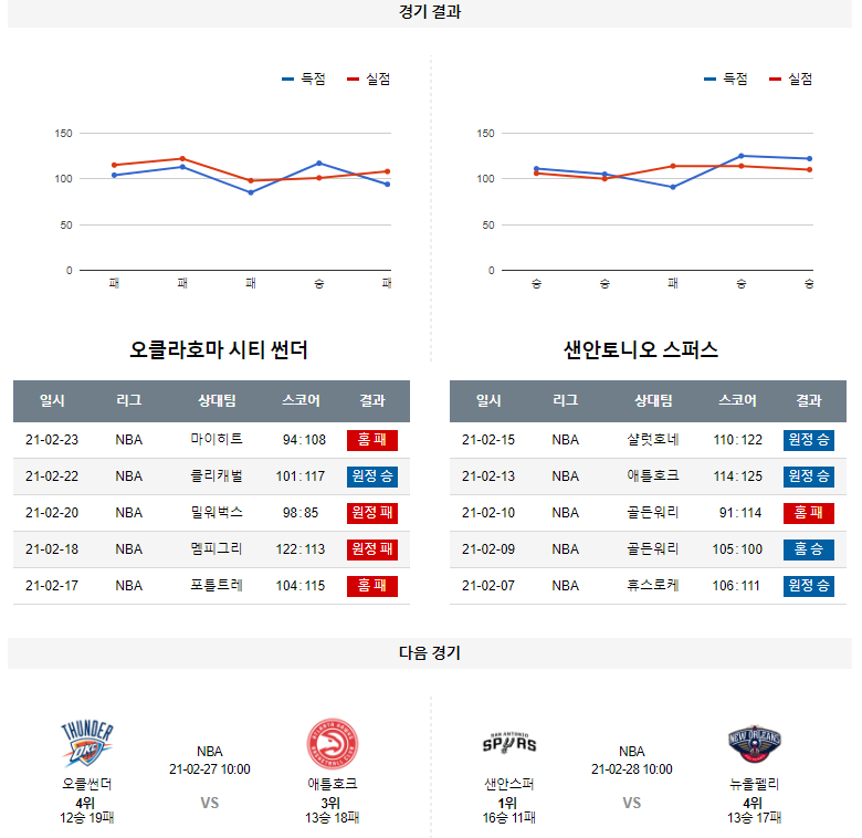 2월 25일 오클라호마 샌안토니오 픽 분석 NBA 농구