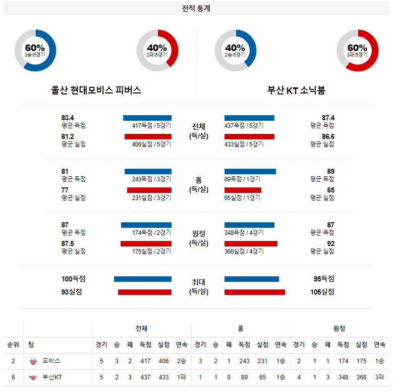 올시즌 상대전에서는 서로의 홈경기 일정에서 승리를 기록하며 2승2패의 결과가 나타나고 있다. 또한, 휴식기 이후 첫 경기에서는 맞춤형 수비 전술의 위력이 올라갔던 유재학 감독의 모비스 였다는 것을 기억해야 한다.