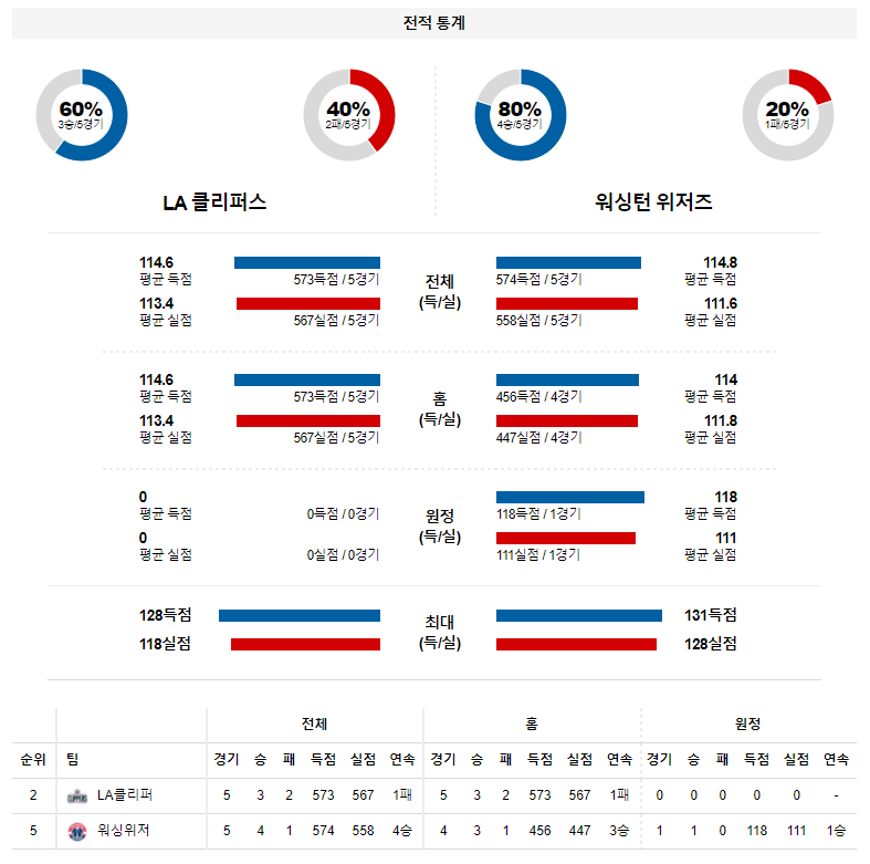 안티 볼 핸들러 집단이 되는 LA클리퍼스가 워싱턴 전력의 핵심이 되는 백코트 자원들의 위력을 반감되게 만드는 수비력을 선보일 것이다. LA클리퍼스 승리 가능성을 추천 한다.