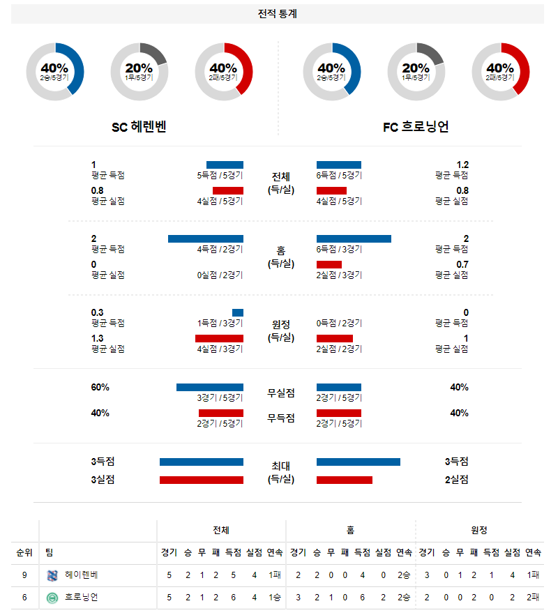 2. 헤이렌베인 이번 시즌 홈 성적 : 10전 5승 2무 3패 (무실점 비율 : 50%, 무득점 비율 : 10%)