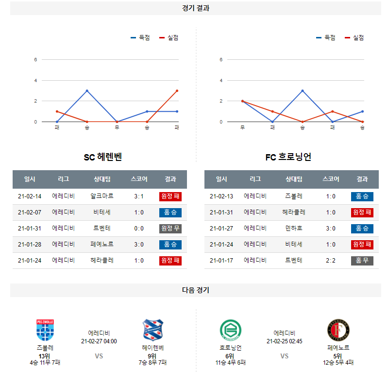 1. 최근 6경기 맞대결 : 6전 1승 5무 8득점 6실점 (흐로닝언 우세)