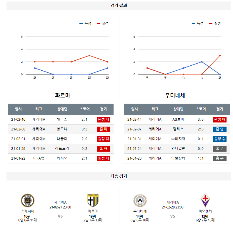 2월 21일 파르마 우디네세 분석 세리에A 축구
