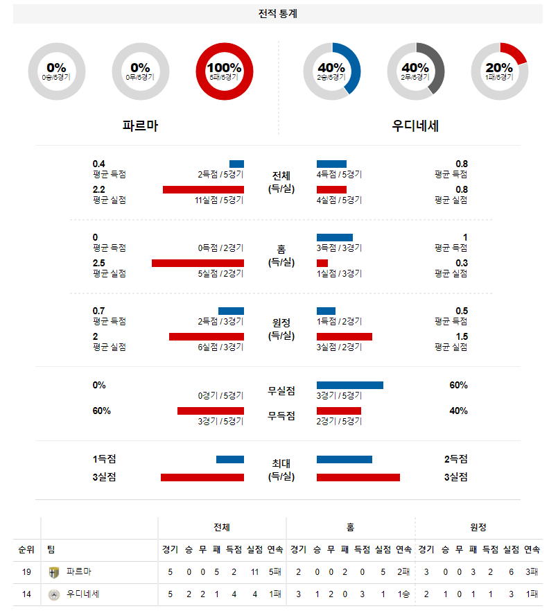 1. 최근 5경기 맞대결 : 5전 3승 1무 1패 11득점 7실점 (파르마 우세)