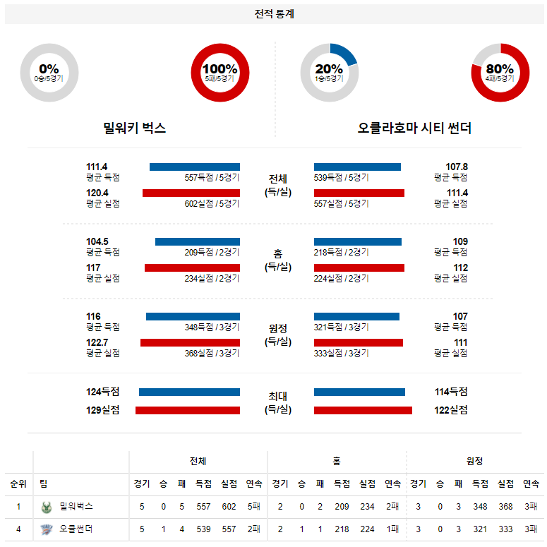 오클라호마는 홈(4승9패)보다 원정(7승8패)에서 경기력이 좋았고 '에이스' 샤이 길저스-알렉산더가 부상에서 돌아왔다. 또한, 밀워키는 연속경기 일정의 불리함이 있는 상황.