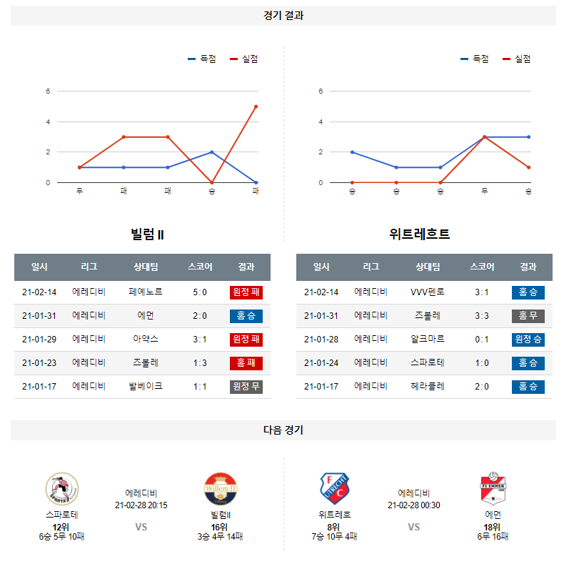 2월 20일 빌럼 위트레흐트 픽 분석 에레디비시 축구
