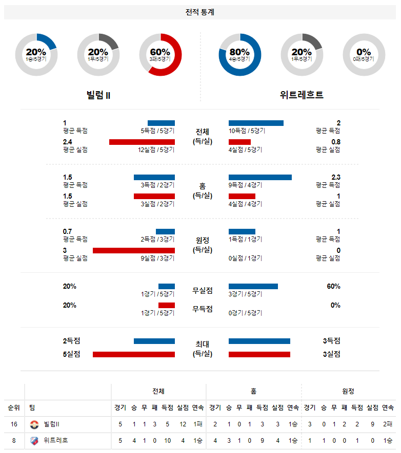 2. 빌렘 이번 시즌 홈 성적 : 10전 3승 1무 6패 (무실점 비율 : 20%, 무득점 비율 : 10%)