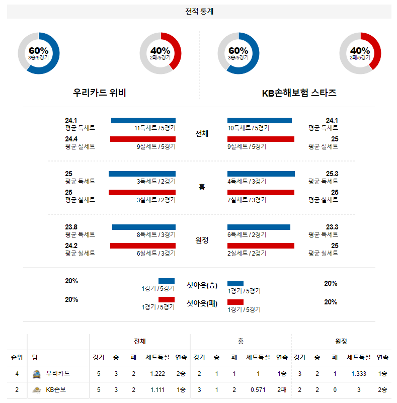 외국인 선수가 같이 결장한 삼성화재 상대로는 케이타 없이 승리를 기록할수 있었지만 알렉스와 나경복이 버티고 있는 우리카드 상대로는 케이타 없이 KB손해보험이 승리를 가져가기 힘들 것이다. 우리카드 승리 가능성을 추천 한다.