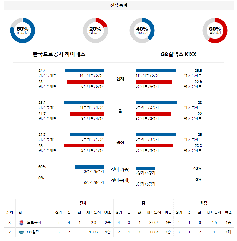 IBK기업은행과 치열한 3위 싸움을 펼치고 있는 도로공사의 경기력이 이전 1,2,3,4, 라운드 맞대결 당시 보다는 많이 올라와 있다고 생각된다. 풀세트 접전의 가능성을 배제할수 없는 타이밍 이다.