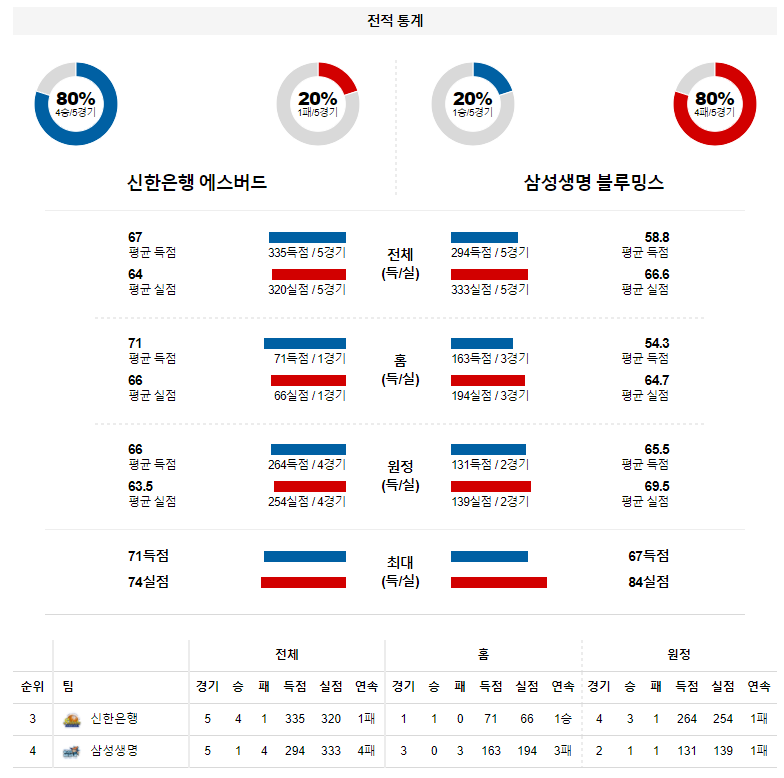 신한은행과 삼성생명은 순위가 확정 되면서 다양한 선수를 기용하며 모든 선수의 경기력을 끌어올리는 데 집중하고 있다. 정규시즌 남은 경기에서 승패의 결과 보다는 부상자가 더 이상 나와서는 안 되고 부상에서 복귀한 선수들의 실전 경기 감각을 끌어 올릴 필요성이 있는 상황. 인대 손상 및 골멍으로 인해 휴식을 취했 김한별이 팀 훈련을 소화하며 복귀 준비를 하고 있으며 휴식 시간이 길었던 삼성생명이 신한은행 보다는 주축 선수들의 출전 시간을 길게 가져갈 가능성이 높다. 삼성생명 승리 가능성을 추천 한다.