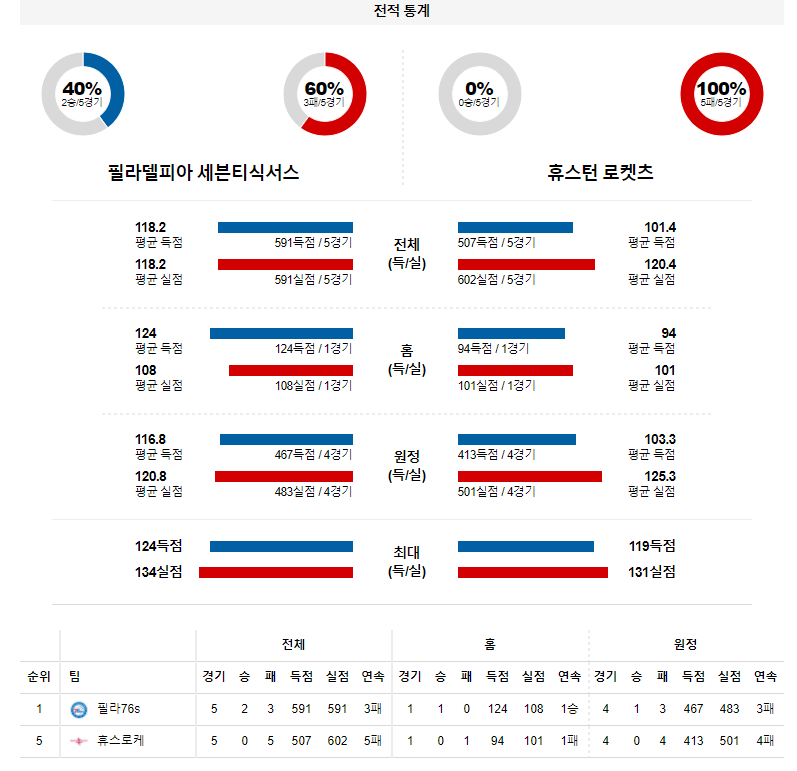 3연패에 빠져 있지만 원정(7승8패)에서 필라델피아와 홈(11승2패)에서 필라델피아는 전혀 다른 팀 이다. 필라델피아가 강력한 주전 라인업의 힘을 보여줄 것이다. 필라델피아 승리 가능성을 추천 한다.