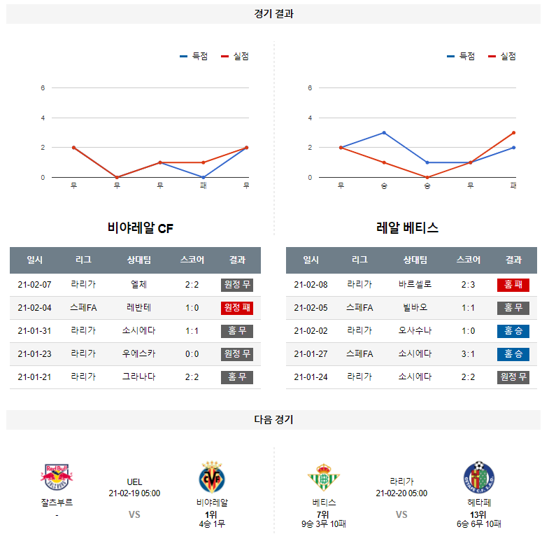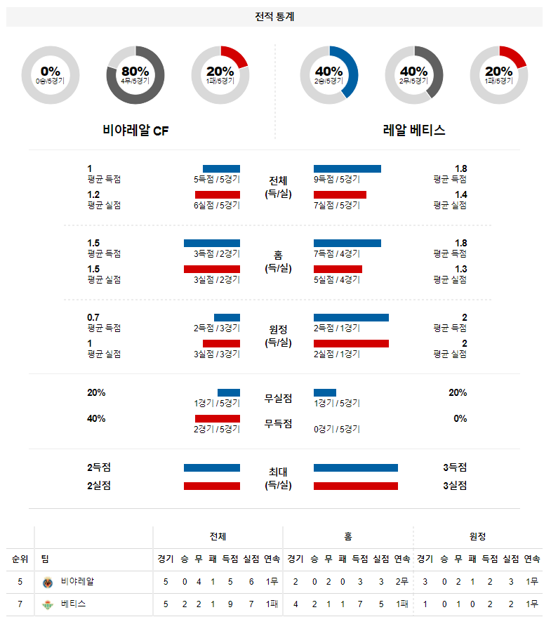 1. 최근 6경기 맞대결 : 6전 3승 1무 2패 12득점 7실점 (비야레알 우세)