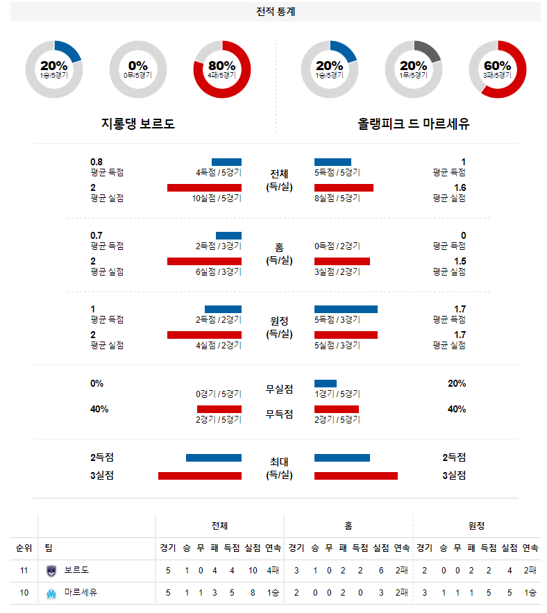 1. 최근 6경기 맞대결 : 6전 4승 1무 1패 9득점 5실점 (마르세유 우세)