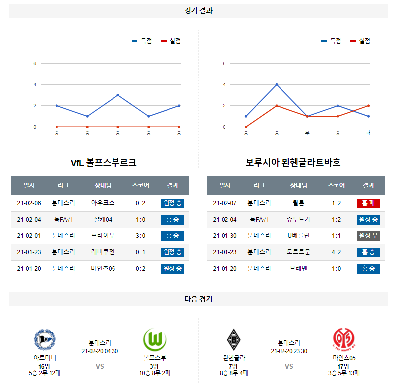 2월 15일 볼프스부르크 묀헨글라트바흐 픽 분석 분데스리가 축구