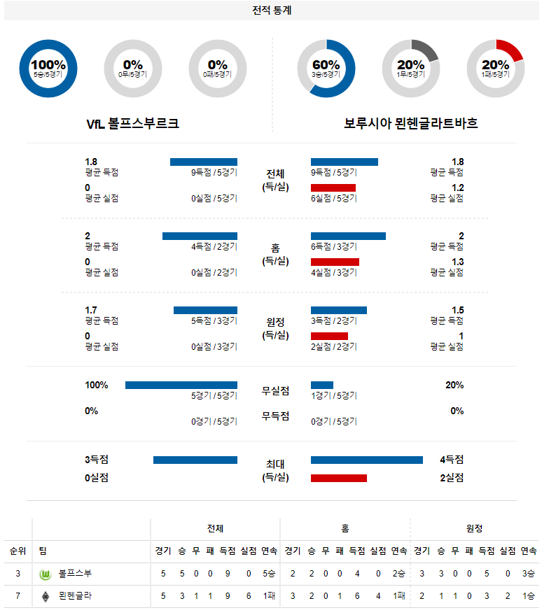 2. 볼프스부르크 이번 시즌 홈 성적 : 9전 6승 3무 0패 (무실점 비율 : 44%, 무득점 비율 : 22%)