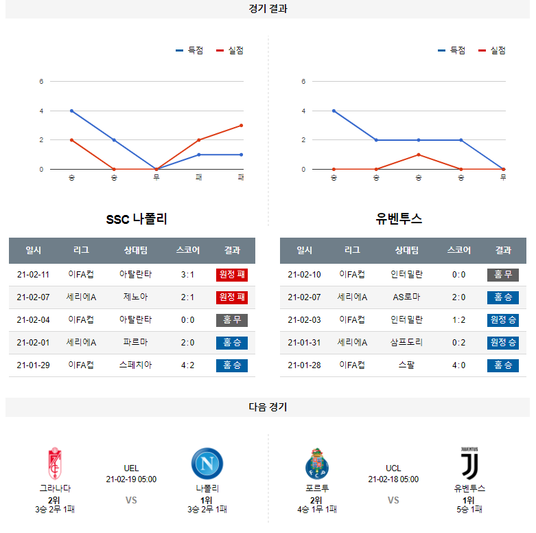 1. 최근 6경기 맞대결 : 6전 4승 1무 1패 12득점 7실점 (유벤투스 우세)