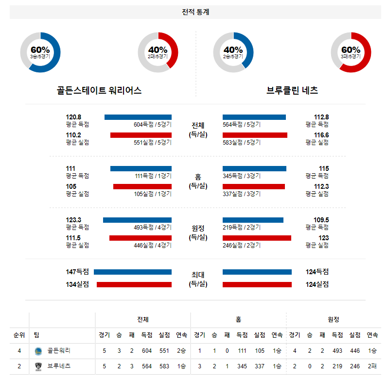 골든스테이트는 빅맨들의 줄부상으로 높이가 낮아졌다. 브루클린의 골밑전력이 약점이 골든스테이트를 상대로는 크게 나타나지 않을 것이다.