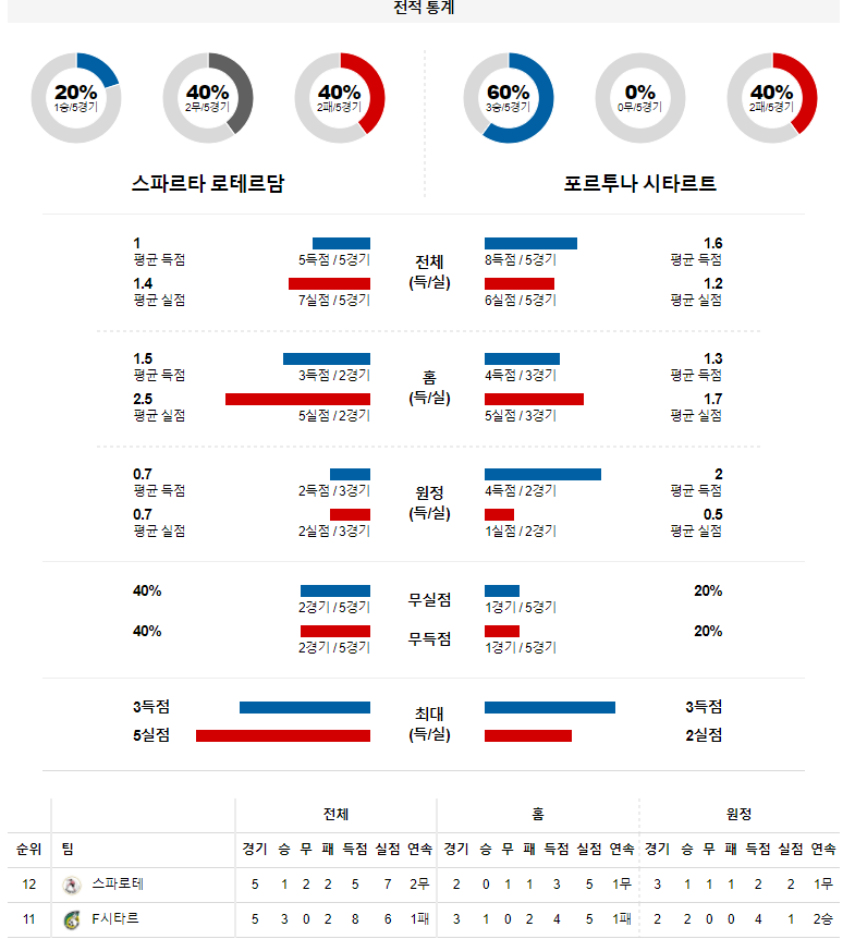 2. 스파르타 이번 시즌 홈 성적 : 10전 2승 3무 5패 (무실점 비율 : 20%, 무득점 비율 : 30%)