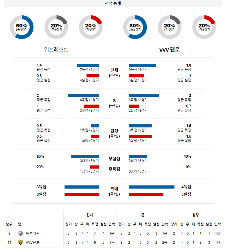 1. 최근 6경기 맞대결 : 6전 2승 3무 1패 11득점 7실점 (위트레흐트 우세)