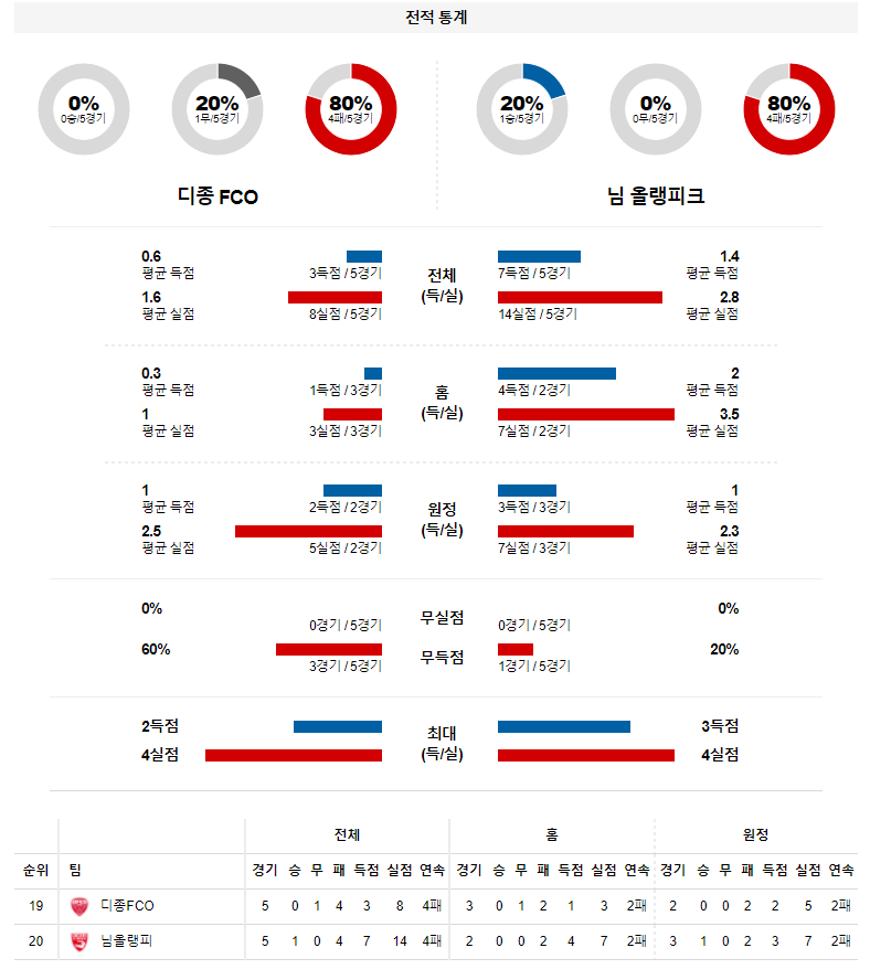 2. 디종 올 시즌 홈 성적 : 12전 6무 6패 (무실점 비율 : 25%, 무득점 비율 : 75%)