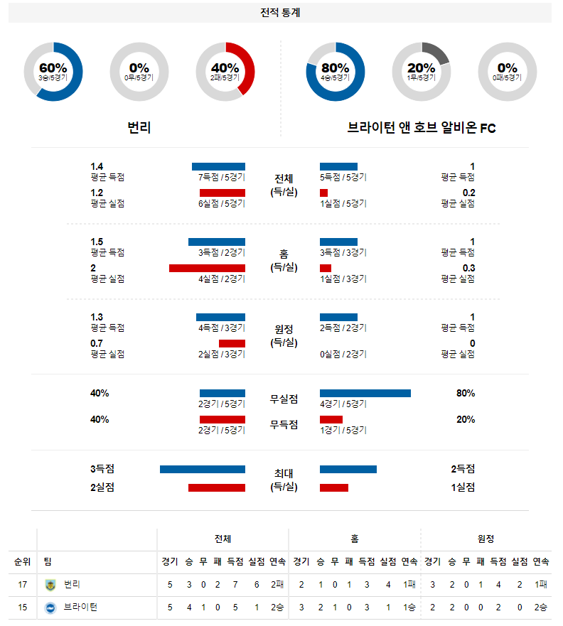 1. 최근 6경기 맞대결 : 6전 2승 3무 1패 6득점 4실점 (번리 우세)