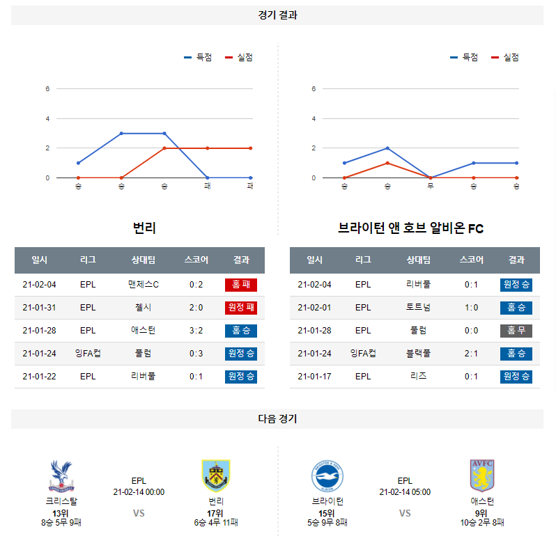2월 7일 번리 브라이턴 분석 프리미어리그 축구