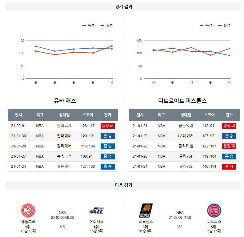 2월 3일 유타재즈 디트로이트 분석 NBA 농구