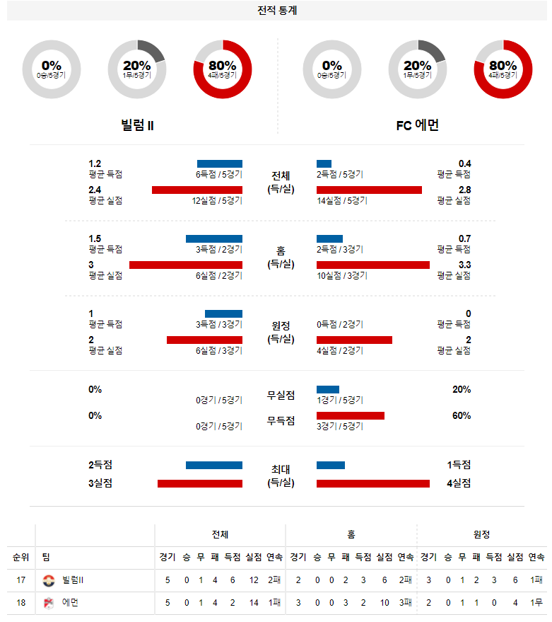 2. 빌렘 이번 시즌 홈 성적 : 9전 2승 1무 6패 (무실점 비율 : 11%, 무득점 비율 : 11%)