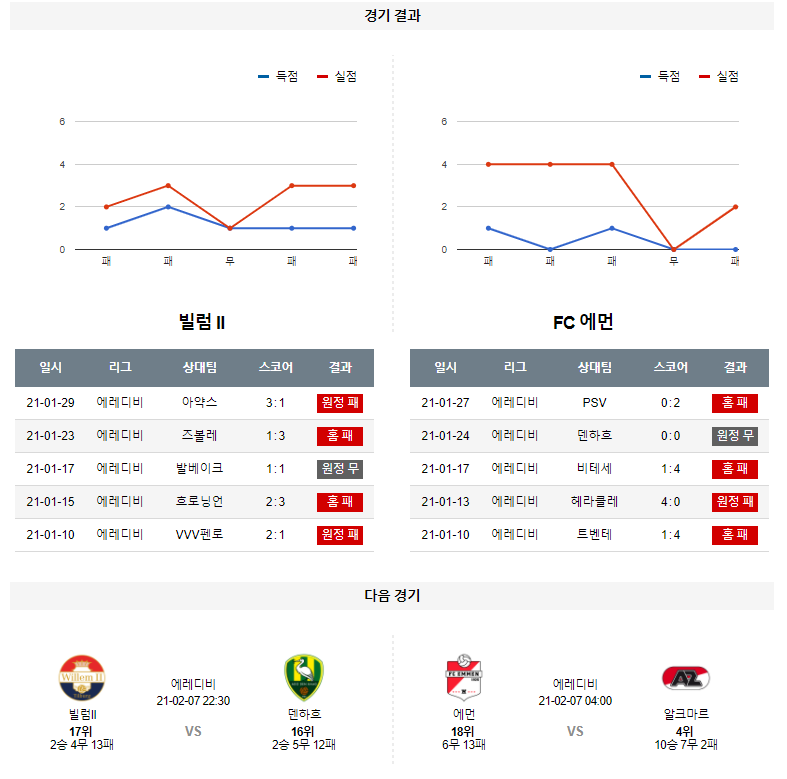 1월 31일 빌럼 에먼 분석 에레디비시 축구