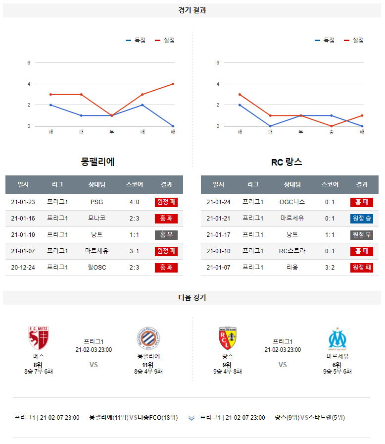 1. 최근 6경기 맞대결 : 6전 3승 1무 2패 9득점 11실점 (몽펠리에 우세)