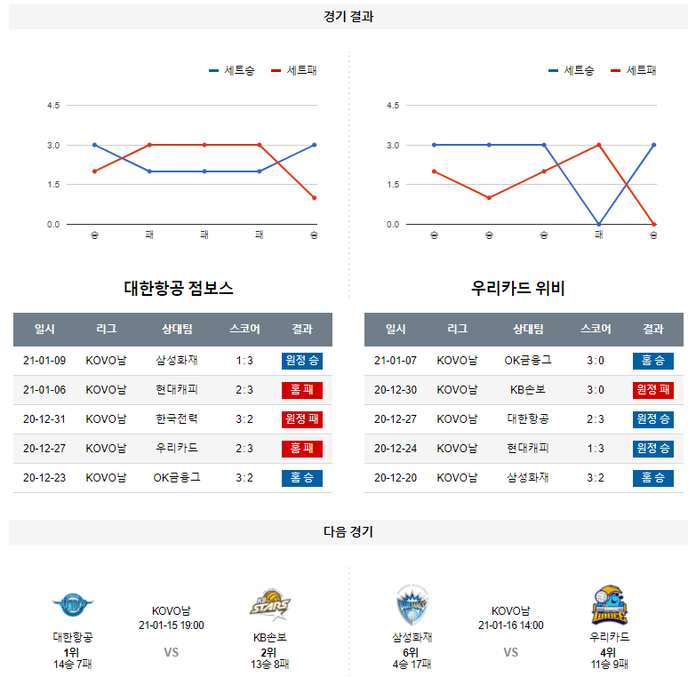 1월 12일 대한항공 우리카드 분석 V-리그 배구