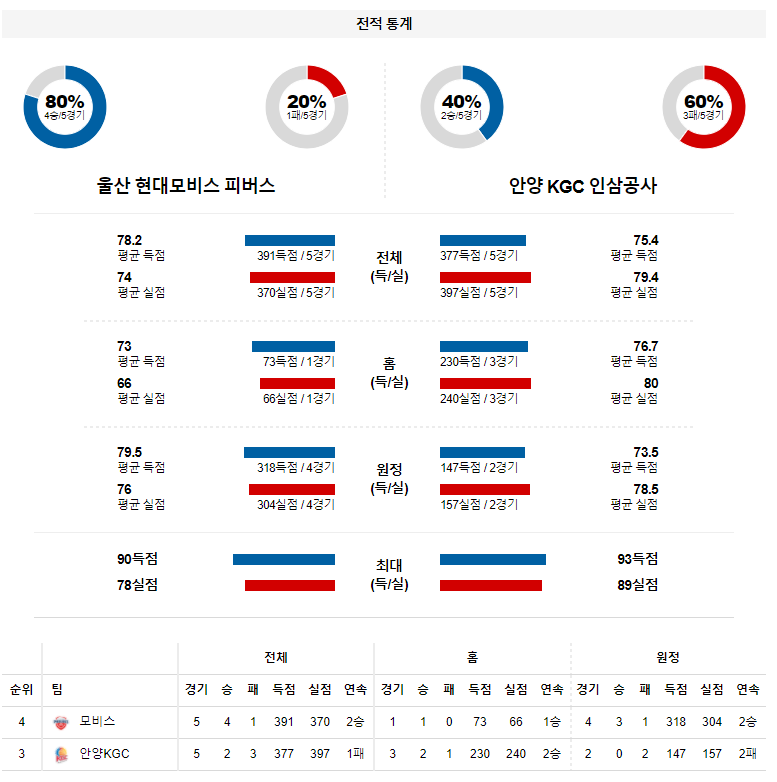 1월 10일 모비스 안양KGC 분석 KBL 농구