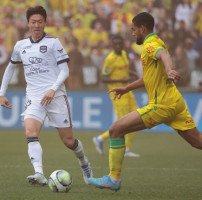 황의조가 24일(한국시간) 낭트전에서 상대와 경합하고 …