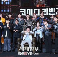 14일 오전 동대문 브이스페이스에서 열린 넷플릭스 예능 ‘코미디 리벤지’ 제작발표회 참석한 전 출연진들이 포즈를 취하고 있다. ‘코미디 리벤지’는 ‘코미디 로얄’ 우승팀 이경규팀이 판을 깔고 K-코미디 대표주자들이 각잡고 웃음 터뜨리는 코미디 컴피티션으로, ‘코미디 로얄’ ‘마이 리틀 텔레비전’ ‘찐경규’ 등 신선한 웃음…