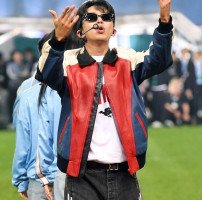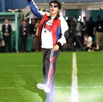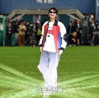 팀 히어로의 가수 임영웅이 12일 대전월드컵경기장에서 열린 팀 기성용과의 하나은행 자선축구대회에서 하프타임 공연을 하고 있다. 2024. 10. 12.박진업 기자 upandup@sportsseoul.com