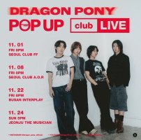 드래곤포니(Dragon Pony)가 데뷔 첫 클럽 투어를 진행한다. 드래곤포니는 오는 11월 1일 서울 CLUB FF를 시작으로 11월 8일 서울 CLUB A.O.R, 11월 22일 부산 인터플레이, 11월 24일 전주 더 뮤지션까지 4개의 클럽에서 'Dragon Pony POP-UP club LIVE'(이하 'POP-U…