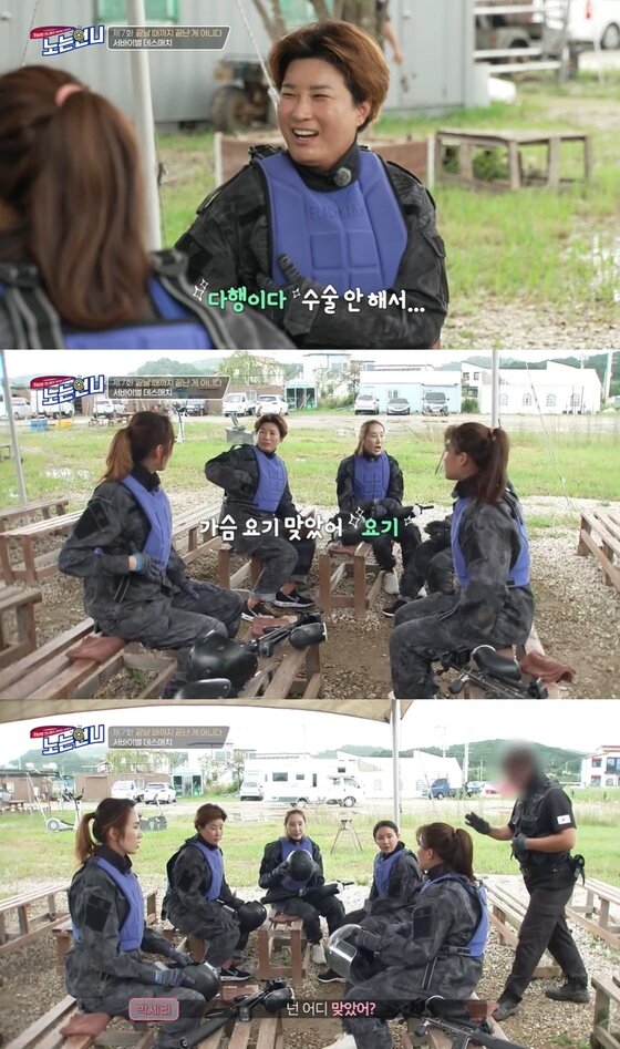 이때 가슴 부위에 페인트총을 맞은 박세리는 "가슴 여기 맞았다"라고 얘기했고, 김은혜는 박세리를 향해 "(언니) 수술한 거 터져 막?"이라고 농담했다.