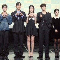 배우 손동표, 최건, 강나언, 김우석, 한채린(왼쪽부터)이 29일 청담동 일지아트홀에서 열린 웹드라마'0교시는 인싸타임' 제작발표회에서 포즈를 취하고 있다. 웹드라마 '0교시는 인싸타임'은 익명 커뮤니티 앱 '인싸타임' 관리자가 되어 전교생의 모든 비밀을 알게 된 '아싸'(아웃사이더)가 지독하게도 얽히고 싶었던 '핵인싸'…
