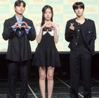 배우 최건, 강나언, 김우석(왼쪽부터)이 29일 청담동 일지아트홀에서 열린 웹드라마'0교시는 인싸타임' 제작발표회에서 포즈를 취하고 있다. 웹드라마 '0교시는 인싸타임'은 익명 커뮤니티 앱 '인싸타임' 관리자가 되어 전교생의 모든 비밀을 알게 된 '아싸'(아웃사이더)가 지독하게도 얽히고 싶었던 '핵인싸' 무리에 들어가며 …