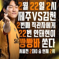 사진=제주SK FC ‘이(2)번 주, 2월 22일(토) 경기는 이(2)보다 좋을 수 없다!’ 프로축구 K리그1 제주SK FC의 No.22 안태현이 올 시즌 2번째 직관자들을 위해 자비를 들여 쌍쌍(22)바를 쏜다. 제주는 지난 15일 제주월드컵경기장에서 열린 하나원큐 K리그1 1라운드 홈 개막전에서 2-0 승리를 거두며 …